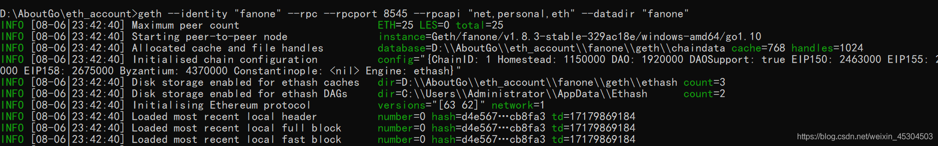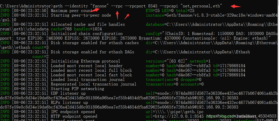 geth --datadir "fanone" --identity "fanone" --rpc --rpcport 8545  --rpcapi "db,eth,net,web3,personal" --rpccorsdomain "*" console