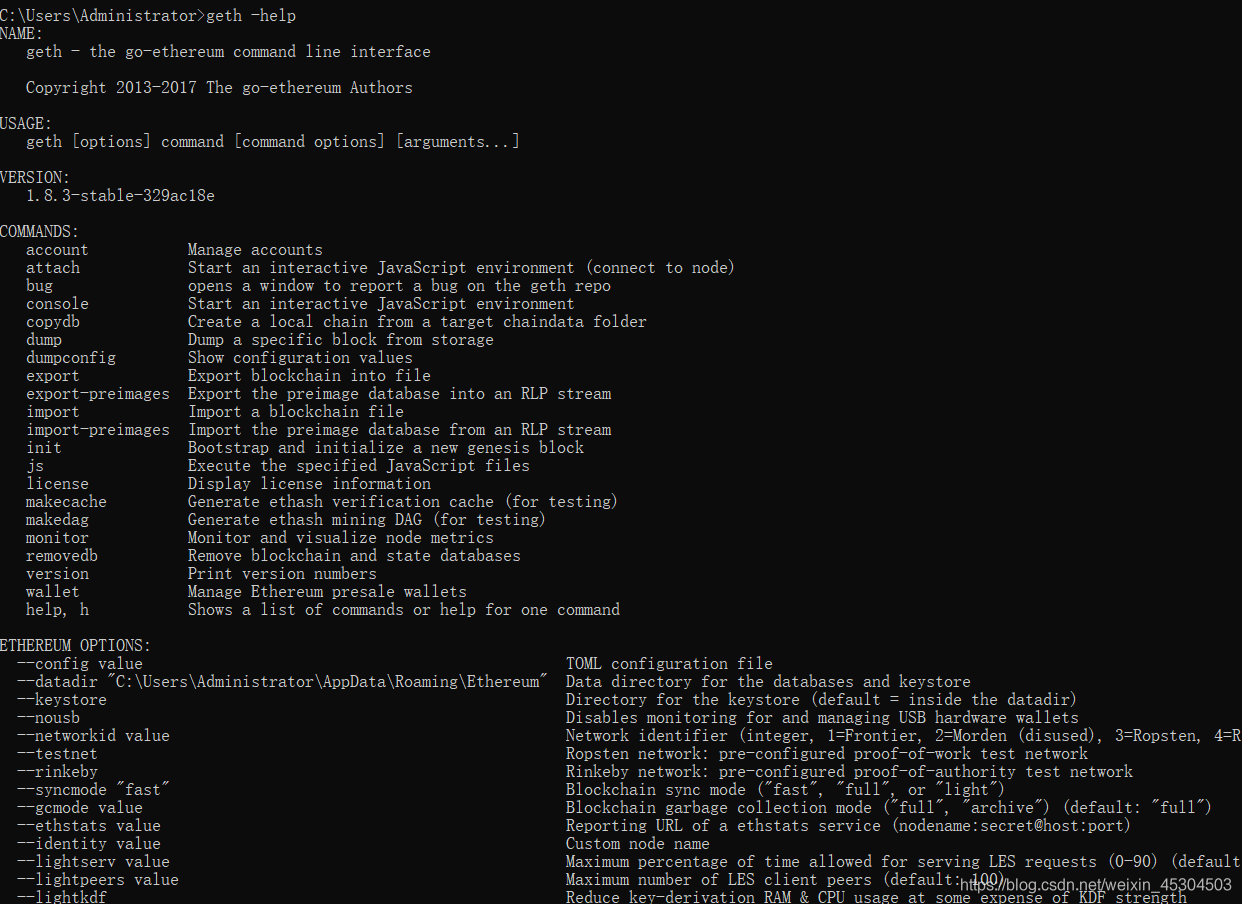 命 令:geth [选项] 命令 [命令选项] [参数…]