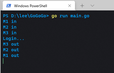 fmt.Println("M1 out")
